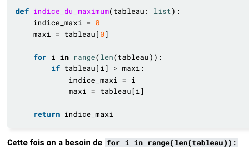 Recherche l'indice du maximum
